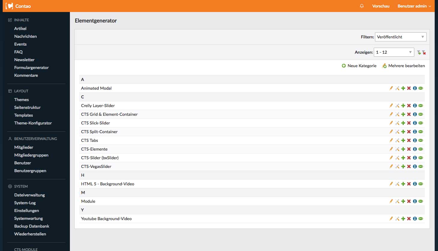 Contao Themes-Shop Inhaltselemente und Module sollen den Nutzern der Themes das Leben erleichtern.